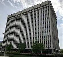 The state auditor leads the Department of State Auditor. The department is split into a general administration division and an auditing division.[3] The former division is led by the state auditor's chief deputy and handles administrative concerns including personnel matters, internal budgeting and procurement, and intra-department coordination.[13] The latter division is headed by a deputy state auditor and several audit managers and is responsible for conducting audits.[23] As of December 2022, the department has 124 employees retained under the terms of the State Human Resources Act.[24] The department is headquartered in the Albemarle Building in downtown Raleigh.[25] It also maintains offices in Pitt, New Hanover, Forsyth, and Buncombe counties.[26]