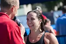Audrey Lacroix (born November 17, 1983) is a retired Canadian competitive swimmer from Montreal, Quebec. She is the Canadian record-holder in the 200-metre butterfly (short-course and long-course). She is a former world record-holder in the short-course 4x100-metre medley relay along with teammates Katy Murdoch, Annamay Pierse and Victoria Poon.[1][2] She was a member of the Canadian team that finished 8th in the 4x100-metre freestyle relay and in 7th place in the 4x100-metre medley relay at the 2008 Summer Olympics.[3] She won the gold medal in 200-metre butterfly at the 2014 Commonwealth Games.[4] and a bronze in the women's 4x100-metre medley relay. She also swam in the 100-metre butterfly final, finishing seventh with a time of 58.78.