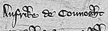 In 1293, almost certainly as a result of the significant English influence upon John's fledgling regime,[11] Aufrica appealed to John and Edward, concerning rights she claimed to Mann as an alleged heiress of Magnús.[12] Later in 1304, Aufrica quitclaimed these claimed rights to Simon de Montagu.[13] Although it is possible that she and Simon were married at about this point,[14] there is no specific evidence of such a union.[15] In any case, Simon later sought to seize control of the island, and in so doing incurred the wrath of Edward II, King of England,[16] who pardoned Simon for his actions against the island in 1313.[17] Later in the century, Simon's grandson, William de Montagu, Earl of Salisbury, inherited Simon's rights to Mann.[18][note 2] Aufrica was not the only contemporary claimant to Mann. In 1305, the claims of a Maria, daughter of Rǫgnvaldr Óláfsson, King of Mann and the Isles, were pursued by her grandson, John Waldeboef.[23]
