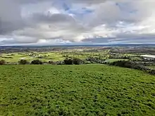 The occupiers of the townland in 1586 were Garrett McGovern, son of Edmund McGovern and grandson of Sean Glas McGovern and also Giolla Ruadh McGovern, son of the above Garrett McGovern, both receiving a pardon for fighting against the Queen's forces in the Fiants of Queen Elizabeth I (No. 4813) dated 19 January 1586.[6] However the land seemed to belong to the Roman Catholic church as it did not form part of the original Ulster Plantation grants and was reserved for the Protestant Church, (The lands of Aughrin granted to the Culme family referred to the townland of Aughrim in Drumreilly parish which formed part of the Dougbally Manor beside Dowra which was granted to Hugh Culme in 1610). By Letters Patent dated 25 January 1627 Aughrim was granted to Martin Baxter, the first Church of Ireland rector of Tomregan parish and since then it passed down as part of the glebe lands belonging to the Rectory of Tomregan.[7] A hill in the townland is named 'Church Hill', either in honour of this ownership or because it originally belonged to the medieval Catholic church in the adjoining townland of Knockateggal.[8] The 1652 Commonwealth Survey lists the townland as belonging to the Cromwellian Commonwealth of England and the tenant as Dun Magawran who was probably a descendant of the 1586 occupiers.