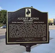 A Salina, Ks., historical marker:[1] "August Bondi, 1833–1907, Jewish-American Abolitionist, Salina Resident"