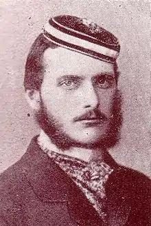 Dönhoff grew up on the family castle Friedrichstein not far from Königsberg and attended the Kneiphof Gymnasium. After the Abitur he studied law at the Rheinische Friedrich-Wilhelms-Universität Bonn. In 1865 he became a member of the Corps Borussia Bonn.[1] As a Prussian major he took part in the Austro-Prussian War at the age of 21. From 1868 to 1870 he was an articled clerk at the Kammergericht and then served again as a major in the Franco-Prussian War. Like his father, Dönhoff also embarked on a diplomatic career and worked as secretary of legation for the Empire in Paris, Vienna, London, Saint Petersburg and Washington. In Washington he made friends with the Interior Minister Carl Schurz and accompanied him on an adventurous journey to the American West. Dönhoff laid down his diplomatic duties when, after his father's death in 1874, he took over his hereditary seat in the Prussian House of Lords. At the 1881 German federal election he moved as representative of the German Conservative Party into the Reichstag (German Empire). He was elected in the Reichstagswahllkreis Regierungsbezirk Königsberg 4.[2] He belonged to this group until 1903, representing the interests of the East Elbian nobility and large estates. In 1906 he became a Prussian landowner. In 1917 August von Dönhoff was one of the founding members of the German Fatherland Party, which advocated a perseverance policy and a peace of victory in the First World War. Dönhoff died at the age of 75 at the Schloss Friedrichstein (Ostpreußen).