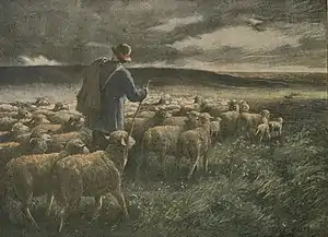 In 1908, for his painting Retour au hameau, he was awarded the Prix Rosa-Bonheur, named for the great French painter of animals, Rosa Bonheur. The award cemented his reputation as a pre-eminent painter of pastoral landscapes, particularly scenes of shepherds and sheep.[14] The painting was purchased by Baron Edmond de Rothschild, who donated it to the Musée des Beaux-Arts de Dijon.[15] Twenty years later, in 1928, Prévot-Valéri saw the same award bestowed on his son André.[16]