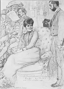 Auguste Prasch-Grevenberg sketched at the Meiningen Court Theatre, 1890.