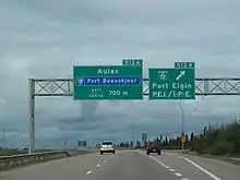 The Trans Canada Highway (New Brunswick Route 2) and New Brunswick Route 16 intersect at Aulac. Most traffic heading for Prince Edward Island via the Confederation Bridge must use this interchange and virtually all traffic passing between New Brunswick and Nova Scotia also travels through this interchange. In 2012, there were about 14,000 vehicles per day passing along Route 2.[1]