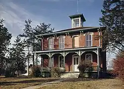 The Austin–Whittemore House is one of the last surviving examples of 1800s architecture in the Vermillion area, and it has been preserved mostly as it was at the time of construction. It reflects a merging of Late Victorian architecture, particularly Italianate, with adaptations stylistic of the American frontier. The two-story house itself is built of out red bricks. A small wooden staircase leads to covered front porch. A large cupola sits atop its hipped roof. It also contains disused stable and buggy facilities and an earthen basement on the property.[2] In 2014, the Clay County Historical Society purchased, remodeled, and moved a replica of Vermillion's first schoolhouse to the grounds. The replica, built in 1939, commemorates the original schoolhouse that was built in 1864 and destroyed in the Great Flood of 1881.[4][5]