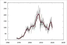 In 2017, two-way trade between both nations was valued at A$3.6 billion.[19] Australian exports to South Africa totaled A$2 billion, mainly consisting of aluminum ores, minerals and machinery.[20] South African exports to Australia totaled A$1.8 billion and consisting of passenger motor vehicles, other ores & concentrates, machinery and parts, and pig-iron.[20] Australia is South Africa's 15th largest export destination. South Africa is Australia's 24th largest export destination.[20]