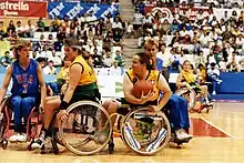 Action during a women's wheelchair basketball game between Australia and the United States