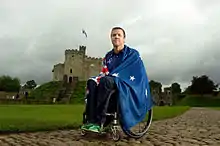 On 21 August 2012, Greg Smith, a wheelchair rugby player and former track and field athlete, was announced as the Australian flag bearer for the London 2012 Summer Paralympics opening ceremony.[4][9] The announcement was made at a special ceremony for the Australian Paralympic Team in front of Cardiff Castle in Wales.[4][9]