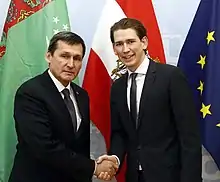 Bilateral relations exist between Austria and Turkmenistan. Turkmenistan maintains an embassy in Vienna, where the current Ambassador of Turkmenistan to Austria is Mr. Nurberdiyev Sylapberdi Ashyrgeldiyevich.[1] Austria has an embassy with residence in Astana (Kazakhstan) where the current Ambassador of Austria to Kazakhstan and Turkmenistan, Tajikistan, Kyrgyzstan is Mr. Wolfgang Banyai[2]