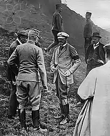 On 15 March, the Austro-Hungarians issued an order to secure the districts of Prijepolje, Novi Pazar, and Kosovska Mitrovica to their governorate, three districts acquired by Serbia during the First Balkan War.[82] Bulgarian actions on the ground persisted, leading to a second crisis, with Conrad demanding diplomatic assistance against Bulgarian violations.[77] The German chief of staff, General Erich von Falkenhayn, ordered Mackensen to mediate between the two parties, consequently Mackensen visited Sofia to meet Ferdinand and Prime Minister Vasil Radoslavov. The proposed German compromise was accepted and, on 1 April 1916, an agreement on a demarcation line was signed between the Austro-Hungarian and Bulgarian high commands.[82]