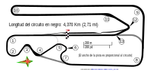 It has a total length of 4.370 km (2.715 mi) in its main extension. It is characterized by a layout that adopts the qualities of the terrain of the Province of Misiones, with slopes and climbs that propose high demands to those who compete on its layout, especially in the contracurve. called "Carousel", a fast contracurve located on a slope, where the cars are required to the maximum to avoid forgetfulness.