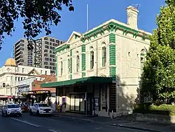 A ceremony for the foundation stone of a Temperance Hall was held on 21 March 1889 by the Tasmanian Temperance Alliance, which included members of the Society of Friends.[5][6] Opening 1 May 1890, the Temperance Hall was used for religious gatherings, tea drinking, live entertainment and family-focused activities.[7] Notably, the Temperance Hall was used for meetings surrounding Women's suffrage in Australia[8] and visited by Jessie Ackermann of the Woman's Christian Temperance Union, who spoke at the hall in 1892.[9] As influence of the Temperance movement in Australia waned following The Great War, the venue was increasingly used for dances, skating and as a cinema projecting silent films.[10] The hall was eventually sold in 1922.[11]
