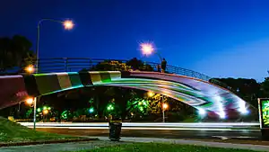 Chrysler Motors opened an assembly plant on the avenue in 1932 (since demolished), an investment complemented by a testing facility housed in an ornate structure north of Barrio Parque (the former facility today houses condominiums and an automobile museum).[3] The northern end of the avenue became home to the River Plate Football Club's monumental stadium, finished in 1938.[4] The avenue was later graced by tennis and country clubs, parks and a number of monumental public buildings, though its boulevard medians were removed around 1970 to accommodate growing traffic. Excavations along the avenue in 2008 uncovered remains of the former Hansen's Café, among the city's first and most popular tango redoubts until its demolition in 1912.[5]