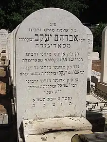 His Hasidim asked his younger brother, Rabbi Shlomo Chaim, to succeed him, but the latter demurred. He did agree to sit in his brother's place at tishen held on Jewish holidays and on the yahrtzeits of his Ruzhiner and Sadigura ancestors.[17] Meanwhile, the Sadigura dynasty continued through the Rebbe's nephew, Rabbi Mordechai Sholom Yosef Friedman (1897–1979), who led Sadigura Hasidim in Sadigura and Przemyśl before emigrating to Tel Aviv in 1939.[6] Upon his death in 1979, Rabbi Mordechai Sholom Yosef was succeeded by his son, Rabbi Avrohom Yaakov Friedman (1928–2013), who moved the Sadigura court from Tel Aviv to Bnei Brak.[18] He was succeeded by his only son, Rabbi Yisrael Moshe Friedman of Bnei Brak, until his passing in 2020.[19]