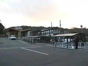 Awa-Kainan Station is the southern terminus of the Mugi Line and is located 77.8 km from the opposing terminus of the line at Tokushima.[3] Only local trains stop at the station.[4] And, since 1 November 2020, it is the northern terminus of the 10.0 kilometer Asato Line to Kannoura Station.