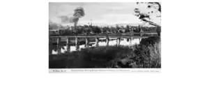 By December 1911, 52 wagons could be held on the siding.[10] In 1909 race trains served Foxton, Sanson, Feilding and Paekakariki.[22] 2,734 travelled by train to the course in 1929/30.[23] During 1938 races there were 4 trains a day from Palmerston and one from Wellington.[24] In 1939, after NZR had decided the bridge was too weak for trains,[25] the track was converted to a road.[26]