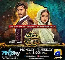 Aye Musht-E-Khaak (Urdu: اے مُشتِ خاک, lit. 'Oh Handful of Dust') is a Pakistani television series produced by Abdullah Kadwani and Asad Qureshi under banner 7th Sky Entertainment, directed by Aehsun Talish. The serial airs on Geo Entertainment. Maha Malik is the writer of this drama. It features Feroze Khan and Sana Javed in leading roles in their fourth project together with Asad Siddiqui, Iffat Rahim and Danial Afzal Khan in prominent roles.[1][2][3]
