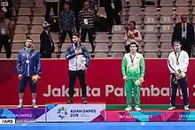 - ↑ "Wrestling Results Book" (PDF). 2018 Asian Games. Archived (PDF) from the original on 3 February 2020. Retrieved 18 May 2020.