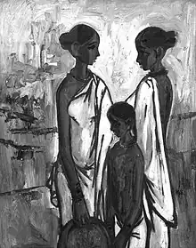B. Prabha (1933 – 2001)[1] was a prolific Indian artist who worked primarily in oil on canvas. She is best known for her graceful, elongated figures of pensive rural women, each dominated by a single colour. By the time of her death, her work had been shown in over 50 exhibitions, and had found its way into significant art collections, including India's National Gallery of Modern Art,[2] the TIFR Art Collection and the Air India Art Collection.