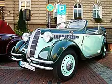 The 1971 cc straight 6 M78 engine was based on the engine in the BMW 326 with a claimed power output of 45 PS (33 kW; 44 hp) and maximum speed of 115 km/h (71 mph).[3] The four-speed manual gear box was also the one already seen on the 326.