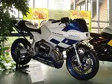 The BMW R1100S is a sports motorcycle that was manufactured by BMW Motorrad between 1998 and 2005. Introduced some 25 years after the R90S, the company's first sports bike, the R1100S was the first BMW bike having clip-on handlebars, rearset footrests and a removable cowl to cover the pillion seat.[5] Producing nearly 100 hp, it has been described as a "sporty sports-tourer".[2]