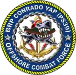 The BRP Conrado Yap (PS-39) is a Pohang-class corvette currently commissioned with the Philippine Navy. She is the service' first modern corvette[3] and one of its most heavily armed units.[4] She was originally named ROKS Chungju (PCC-762) during her service with the ROK Navy.[5][6]