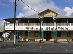 Babinda State Hotel is a heritage-listed hotel at 65-85 Munro Street, Babinda, Cairns Region, Queensland, Australia. It was designed by Department of Public Works (Queensland) and built from 1916 to 1917 by day labour. It is also known as Babinda Hotel. It was added to the Queensland Heritage Register on 22 February 2002.[1]