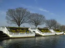 The Hawley Estate was gated off from the public with hedges and grand ornate estate fencing so that the public rarely saw its vast luxuries and amenities. In the late 1960s the site of Hawley's Pond was in a rundown state, being unkempt and dilapidated. When Route 231 was being built, Hawley's Lake Park lost all hope of being repaired and restored to its former glory: the routes northern and southern terminus were run directly through the estate. Some sources even claim that the lake was made considerably smaller and was partially filled in during the expressway's construction. Today, Hawley's Lake Park is an unused resource due mostly for its lack of parking and lack of village concern. The aging grand falls were replaced with a more modern, less ornate and less attractive setup. The Babylon Beautification Society tries from time to time to maintain the site, although no plan has proved considerably successful. Since there is no parking at the site, and because access to families that might otherwise want to use it is constrained by the necessity of crossing active highway lanes, the current status of the site has remained unchanged. Between the park and the Lake Drives in West Islip and the northern terminus of Route 231 is a small group of ponds also belonging to the former Effingham Park. This portion is no longer designated as park property, and is accessible to the homes on Lake Drive South and Lake Drive North. The overflow pool from Hawley's Fall opens into two tunnels beneath Main Street that drain into Sumpawams River, known locally as East Creek, and eventually into Great South Bay.