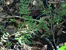 Backhousia oligantha is a rare species of plant in the family Myrtaceae. Mostly found in south eastern Queensland. The small tree has an unusual growth habit, with colonies of many prostrate shoots and many stems from one genotype. At the type location, there are 100 to 200 stems in six clumps, possibly with only six unique individuals. The epithet oligantha is derived from the Greek language, meaning few flowers.[1][2]