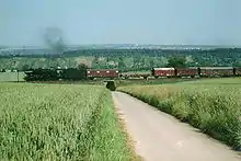 Steam freight train between Freiberg am Neckar and Benningen, 1972