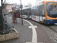 In 1913, the Bad Durkheim–Ludwigshafen-Oggersheim railway was opened by Rhein-Haardt Bahn GmbH, which begins on the station forecourt. Between Ludwigshafen-Oggersheim and Bad Durkheim, the line, which was authorised as a railway, runs in Bad Dürkheim as a tram on grooved rails.