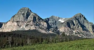 Bad Marriage Mountain (8,350 feet (2,545 m)) is located in the Lewis Range, Glacier National Park in the U.S. state of Montana.[3] The mountain was named by Superintendent E. T. Scoyen for a Blackfoot Indian leader Bad Married. Bad Marriage Mountain became the accepted colloquial name. At one time, the summit was called Elk Tongue by J.W. Schultz, an early chronicler of park geography and activities. Because no Blackfoot equivalent to Elk Tongue was found, the English name was dropped and Bad Marriage Mountain became the official name.[4]