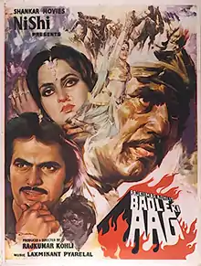 Badle Ki Aag (transl. Flames of Revenge) is a 1982 Hindi-language action thriller film, produced and directed by Rajkumar Kohli[1] under the Shankar Movies banner. It stars Sunil Dutt, Dharmendra, Jeetendra, Reena Roy, Smita Patil and music was composed by Laxmikant–Pyarelal.[2] Badle Ki Aag was a box-office success.