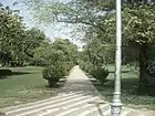 By 1860, when the first part of Lawrence Gardens had been laid out, the site had become a wilderness, partly used as a menagerie and the rest as a pleasure ground for badminton, archery and cricket. The first tree planted in the garden was in January 1862 and that same year Lawrence Hall was constructed for holding public meetings and theatrical entertainment.[6] In 1866 Montgomery Hall was also completed and in 1868 the site enlarged through the purchase of land to the south of the gardens. By 1876 the garden contained 80,000 trees and shrubs of 600 different species including trees from the plains of India, Austria, Syria and southern Europe.[6]