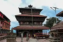 Bagh Bhairab Temple(Nepali: बाघ भैरव) is a historic Hindu temple dedicated to Bagh Bhairab, an incarnation of Shiva as a tiger.[1] It is located in Kirtipur, Bagmati Province, Nepal and dates back to the 16th century.[1] The residents of Kiritpur believe that Bagh Bhairab protects the town.[1] Bagh Bhairab Temple features the swords used by King of Gorkha (later King of Nepal) Prithvi Narayan Shah's army during the Battle of Kirtipur.[1][2][3]
