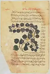 Of these, a manuscript known as the Mashhad Manuscript, originally believed to be 13th-century work, has been reassessed and now dated to between 1152 and 1176, providing one of the earliest examples of illustrations in the style of the Baghdad School.[10] Another early example of these translations is the translation and work probably by Abdallah ibn al-Fadl.[11] The illustrations were considered especially important, and it remains one of the best examples of manuscript translation and illustration produced by the Baghdad School.[2] Dioscorides was a renowned Greek physician, herbalist, and pharmacist serving the Roman Empire and its armies during the first century CE, whose work gained influence throughout the medieval Islamic world.[9]