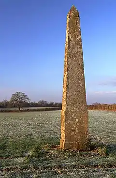 Bainton Manor Farm is a coursed rubblestone house.[1] It was constructed in either the latter part of the 16th or earlier part of the 17th century,[1] during the Great Rebuilding of England, originally as the manor house.[1] In 1783 John Warde, founder and first Master of the Bicester Hunt,[2] was using it as a hunting-box, Joseph Bullock of Caversfield had bought the manor and the two men together built stables and kennels there.[1] 330 yards (300 m) northwest of the hamlet an obelisk marks the grave of a favourite foxhound.[3]