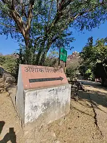 The Minor Rock Edict of Ashoka, found on the platform in front of the temple.[2]