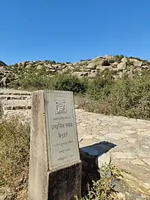 The inscription was found on a rock on the platform between the Bairat Temple and the huge cannon-shaped rock in front of it.[2]