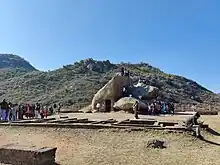Bairat Temple is a freestanding Buddhist temple, a Chaityagriha, located about a mile southwest of the city Viratnagar, Rajasthan, India, on a hill locally called "Bijak-ki-Pahari" (lit.'Hill of the Inscription').[1][2] The temple is of a circular type, formed of a central stupa surrounded by a circular colonnade and an enclosing wall.[3] It was built during the time of Ashoka in the 3rd century BCE, and near it were found two of Ashoka's Minor Rock Edicts, the Bairat and the Calcutta-Bairat Minor Rock Edicts.[3] It is the earliest circular Buddhist shrine and therefore, Bairat temple is an important marker of the architecture of India.[4]