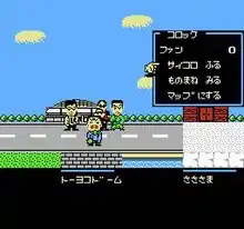 Bakushō! Star Monomane Shitennō (爆笑! スターものまね四天王, "A Hearty Laugh! Imitation of the Four Heavenly Kings Star") is a Nintendo Family Computer life simulation video game that portrays the life of either a musician or a famous performer of the monomane (模倣, "imitation") style of Japanese theatre.[3] The object is to gain popularity while performing concert tours through the fictional city. Celebrity challenges are included in the game; they are considered to be miniature games like swimming and kicking a giant ball into a goal in a manner similar to soccer.[3] While these games are fun to play, losing results in a loss of popularity points similar to performing terribly at a concert.