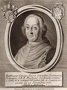 - 1 2 3 4 Miranda, Salvador. "CENCI, iuniore, Baldassare (1710-1763)". The Cardinals of the Holy Roman Church. Florida International University. OCLC 53276621. Retrieved December 29, 2019.
