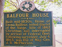 After the surrender of the Confederates, Balfour House served as headquarters of Union Maj. Gen. James B. McPherson.[6][4]