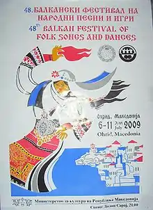 Balkan Folklore Festival (Macedonian: Балкански Фолклорен Фестивал) or Balkan festival of folk songs and dances is an international folk festival in Ohrid, North Macedonia. It was founded in 1962 and represents the oldest manifestation of its kind in the Balkans. At that festival many vocal and instrumental artistic groups and solosingers present the authentic tradition and culture throughout the dances, songs, customs, traditional clothes and instruments. Traditionally, the festival is held at the beginning of July.[1]