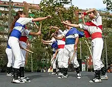 Ball de bastons (Catalan pronunciation: [ˈbaʎ də βəsˈtons], stick dance) is the name of a ritual weapon dance spread throughout Europe and the rest of the Iberian area (cossiers in Majorca, Portuguese pauliteiros, Aragonese palotiau, Basque ezpatadantza and Spanish paloteo or troqueado) but mostly in Catalonia,Valencia , Aragón and Castilla y León where it is UNESCO heritage. English and Welsh Morris dances are well-known relatives to these traditions. The origins of dance are difficult to reference; first recorded mention dates to 1150, in a banquet of Count Berenguer IV)[1]