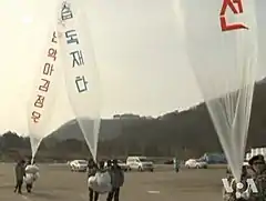 Balloon propaganda campaigns in Korea include both North and South Korean propaganda leaflet campaigns through the use of balloons as a distribution method since the Korean War. A variety of other contents have also been included with the balloons. Originally, these campaigns were organized by the governments and militaries of the Korean states. Contemporarily, however, they are mainly organized by South Korean non-governmental organizations (NGOs) that regularly involve themselves in balloon release events that aim to send materials censored in North Korea, as well as various other goods, to the North Korean people.[1][2][3][4]