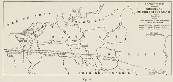 - Distance: Comte Henry de la Vaulx (and Georges Castillon de Saint-Victor), FRA 1925 km (World record),[6] Jacques Balsan FRA 1345 km, Jacques Faure FRA 950 km