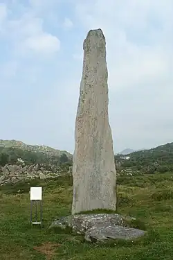 Ballycrovane Ogham Stone stands in a field 4.3 km (2.7 mi) east-southeast of Ardgroom, overlooking Kenmare Bay.[6][7]