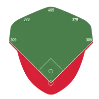 | Field size | Left Field – 309 ft Left-Center – 446 ft (1954), 378 ft (1990) Center Field – 445 ft (1954), 405 ft (1980) Right-Center – 446 ft (1954), 378 ft (1990) Right Field – 309 ft ![]() |